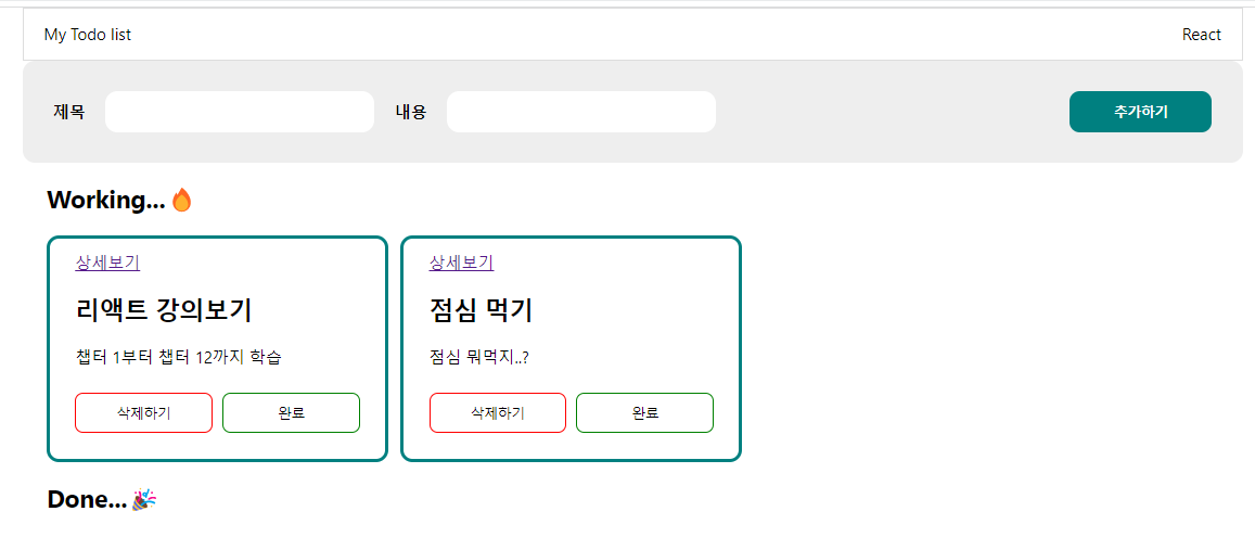 만들어진 페이지는 다음과 같다. 이때 onChange를 통해서 값을 받는데, 이 값이 다시 value값으로 들어가기 때문에 값을 입력할 때마다 리렌더링이 일어난다.